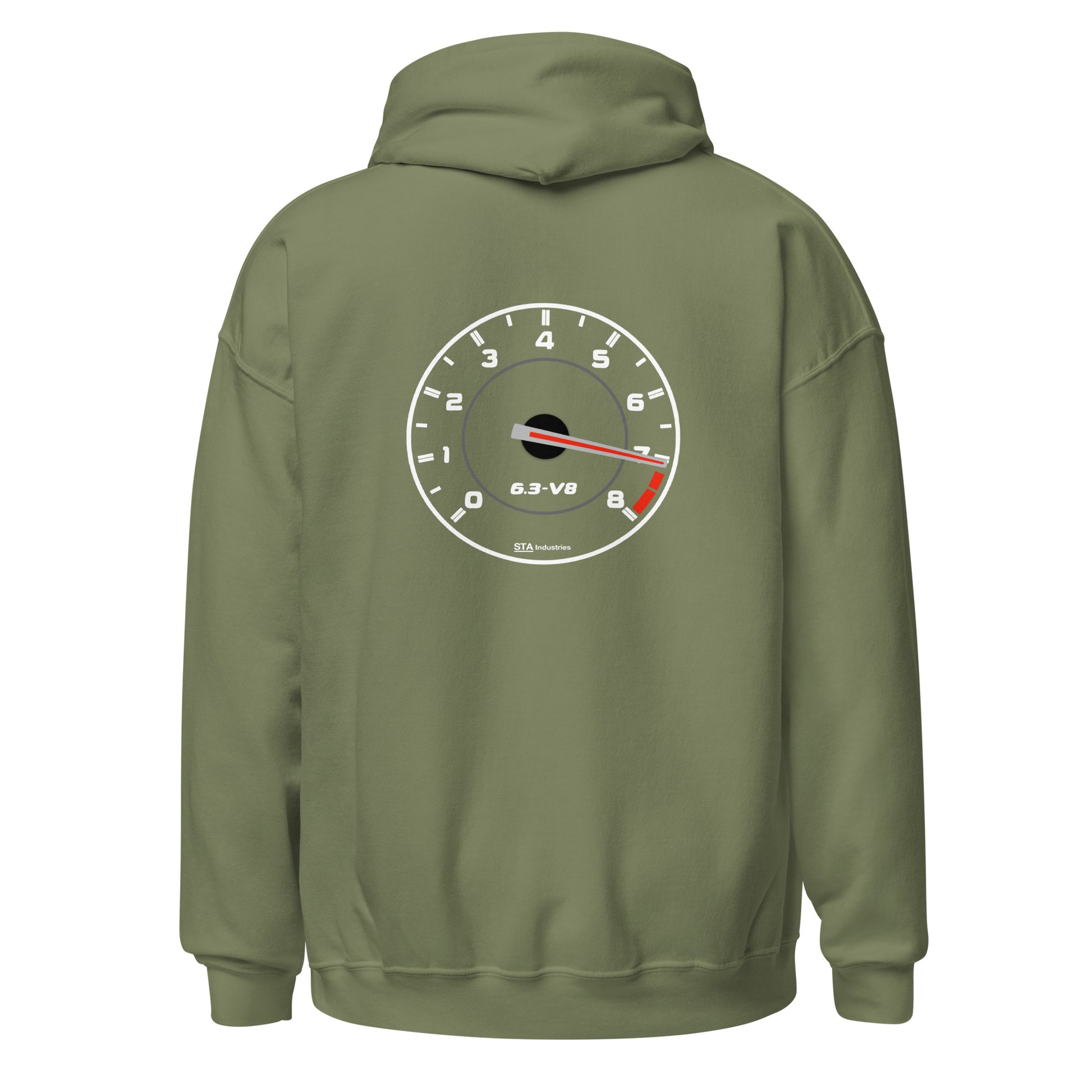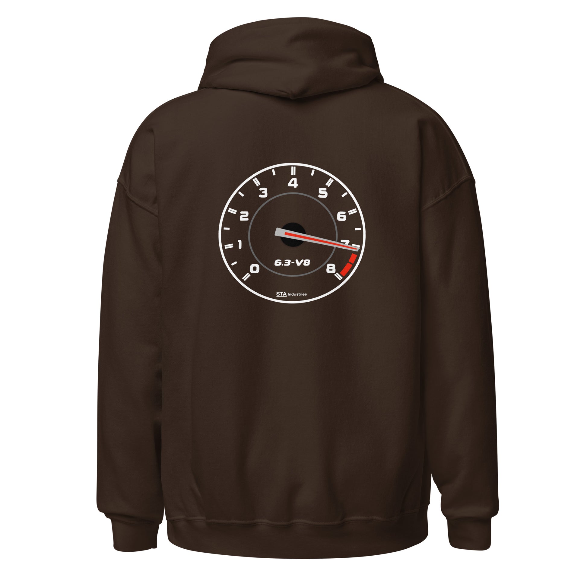 A replication of the W204 C63 tach on a nice cozy hoodie, at redline of course. The 6.3 V8 text on the front is embroidered, while the graphic on the back is direct to garment (DTG) printed.