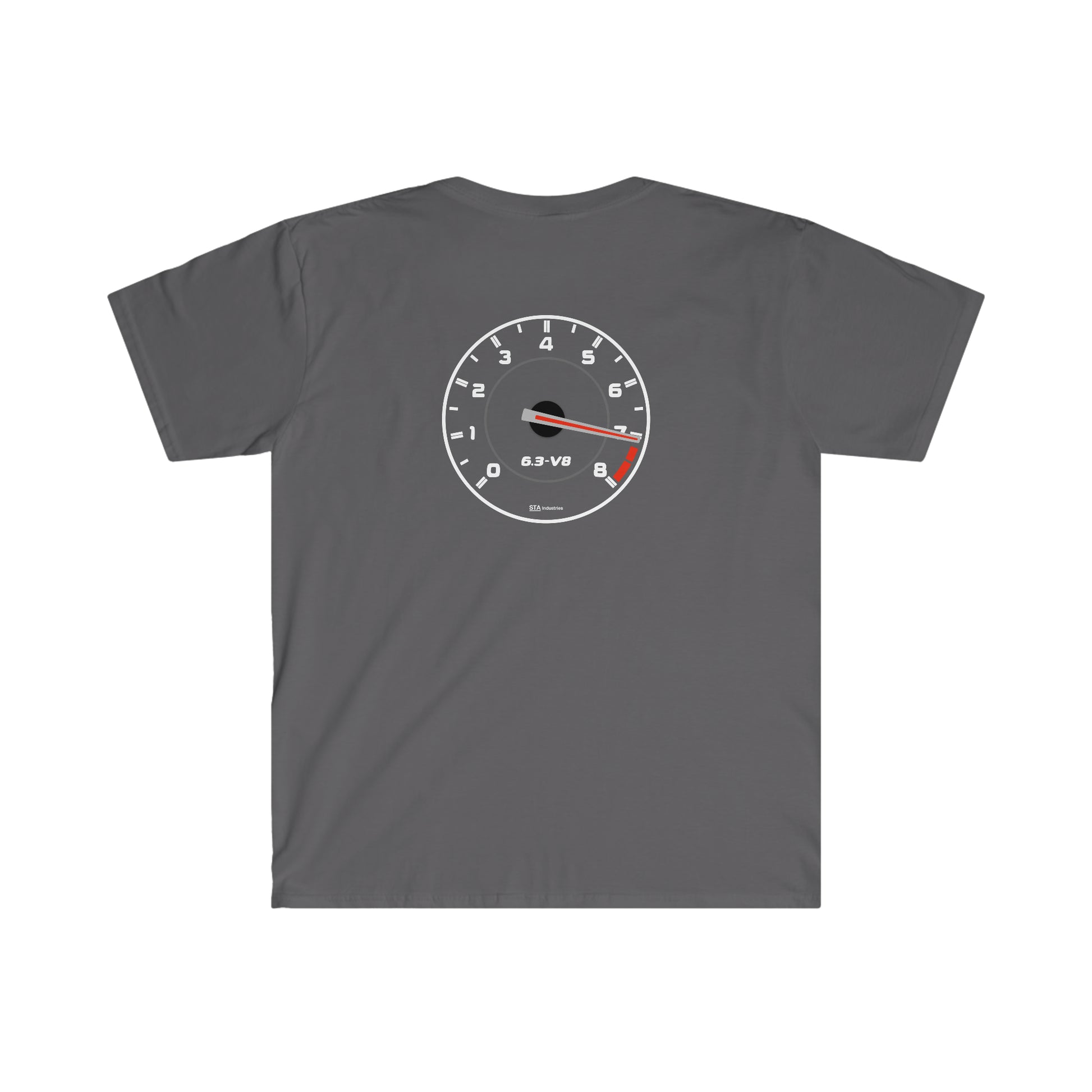 "6.3-V8" printed on the front, with a W204 C63 inspired tachometer printed on the back, at redline of course.