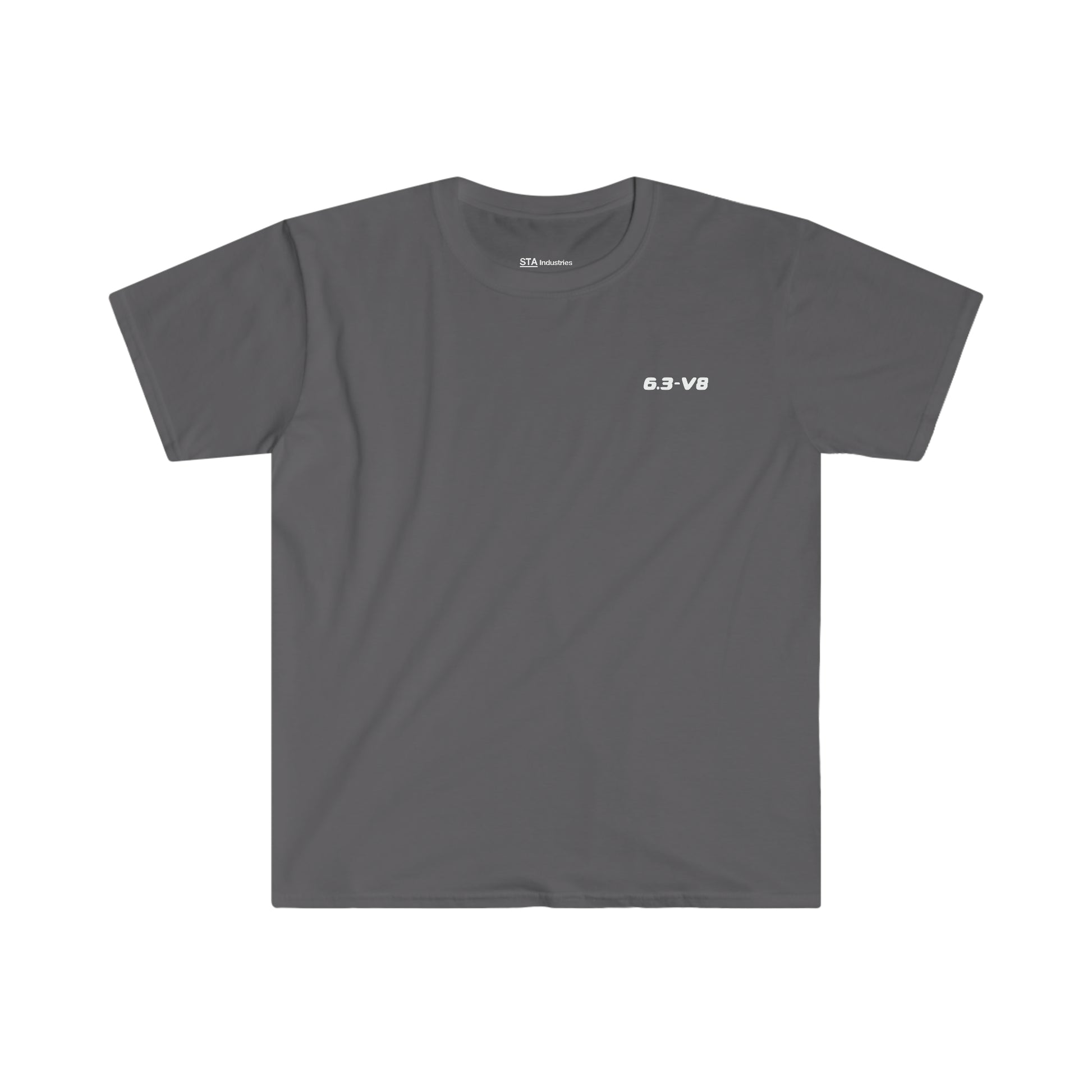 A minimalistic tee featuring the "6.3-V8" script on the chest, inspired by the W204 C63 gauge cluster.